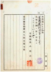 三六 第二二号 明治四三年八月台湾総督府訓令第一六二号庁職員管内出張旅費規程ニ依ル旅費額制定ノ件