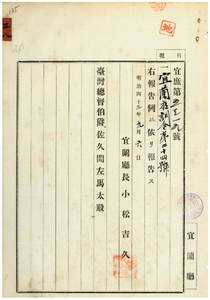 宜蘭廳訓令第二十四號總督府職員旅費規則中移轉料支給額ヲ定ムル件