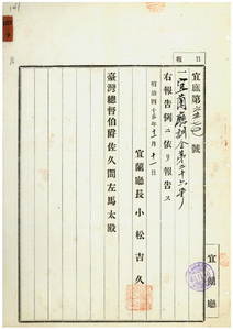 宜蘭廳訓令第二十六號四十年宜蘭廳訓令第十六號廢止ノ件