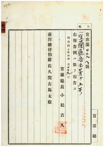 宜蘭廳告示第十五號阿片煙膏購買吸食特許鑑札并通帳亡失ノ件