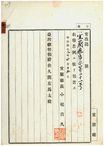七〇 第二一号 宜蘭庁羅東堡羅東街ニ発生シタ豚疫終熄ニ付キ豚ノ出入並ニ病毒伝播ノ虞アル物品ノ搬出入ヲ停止シタル処置ヲ解除ノ件