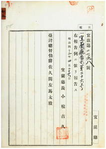 七五 第二六号 宜蘭庁管内ノ陳阿才・陳知母・陳氏葱・王漏串・郭氏玉金・黄阿三・李勇・洪烏正・林友・高恭・楊氏練・呉尼鼻・潘阿九・黄知・林烏番・黄新経・呉文成・荘寅・葉水吉・陳伝・王氏雀娘・劉郭氏金・陳朝木・鄭成文・鄭松・施芳徳・高氏貴・戴土・施皇彬・林生・韓契・呉仕・陳槌・李古・柯氏鶯・郭恵・鄭光知・呉阻・陳登雲・林生・黄允・陳淡・周紫微・李氏品・王氏意・謝開・張連蒲・張難・候丁・周山知・王栄ハ阿片烟膏購買吸食特許鑑札並ニ通帳亡失ニ付キ該鑑札及ヒ通帳ヲ無効トス