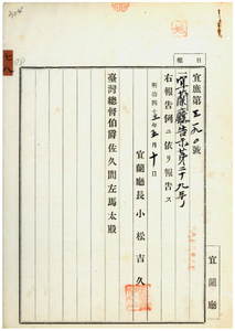 七八 第二九号 宜蘭庁管内ノ蔡経・陳慶ハ阿片烟膏購買吸食特許鑑札並ニ通帳ヲ、林崁ハ阿片烟膏購買吸食特許鑑札ヲ亡失ニ付キ該鑑札及ヒ通帳ヲ無効トス