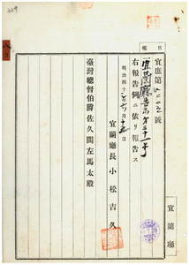 宜蘭廳告示第三十一號阿片煙膏購買吸食鑑札并通帳亡失ノ旨關係廳ヨリ通知ノ件