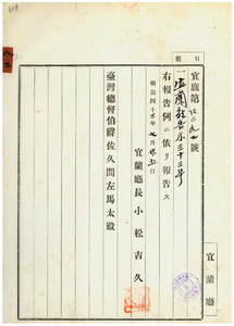 八二 第三三号 宜蘭庁頭囲堡頭囲街鄭騰輝ヲ阿片烟膏仲売捌人ニ指定スル件