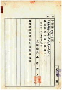 宜蘭廳告示第五十九號第一守備隊管下徵兵身體檢查施行場所通知ノ件