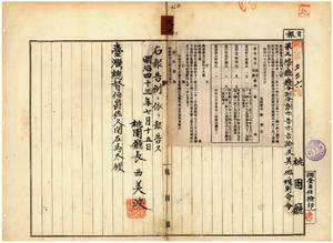 九〇 第四八号 桃園庁桃从堡ノ桃園街・小檜渓庄・崁仔脚庄・大樹林庄ニ豚虎列刺発生ノ件(1910-07-15~1910-08-26);桃園庁・新竹庁・台中庁・南投庁・嘉義庁・台南庁・阿緱庁ノ告示供閲ノ件(1910-08-06~1910-08-26)