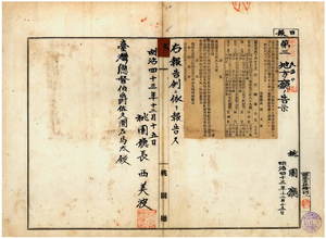 六 第八六号 桃園庁管内ノ林聖祈・黄賢・林丙・呂潮枝ハ阿片烟膏購買吸食特許鑑札遺失ニ付キ該鑑札ヲ無効トス