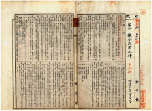 一六 第七号 土地整理組合規則制定ノ件並ニ明治三九年五月新竹庁令第九号ハ廃止シ、明治三九年四月苗栗庁令第一〇号ハ当庁管内ニ於テ失効ス(1910-02-26~1910-04-13);新竹庁令第七号訂正ノ件(1910-03-12~1910-04-07);新竹庁令第七号供閲ノ件(1910-04-07~1910-04-13)