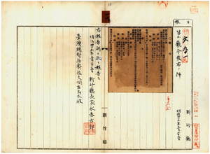 一九 第一〇号 地租及官祖ノ徴収期日制定ノ件並ニ明治三八年一月苗栗庁令第一号ハ当庁管内ニ於テ失効ス