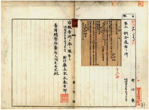四〇 第二〇号 新竹庁区長報告例制定ノ件並ニ明治三八年七月苗栗庁訓令第一三号及明治四〇号一〇月新竹庁訓令第四四号ハ廃止ス(1910-06-22~1910-07-08);新竹庁訓令第二〇号別冊添付洩ニ付キ照会ノ件(1910-06-28~1910-06-28);新竹庁訓令第二〇号供閲ノ件(1910-07-05~1910-07-08)