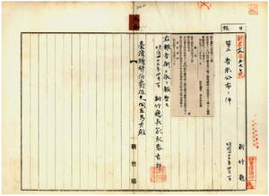 新竹廳告示第四十二號新竹廳報第四百十三號ヨリ臺灣新聞附錄トシテ發行ノ件