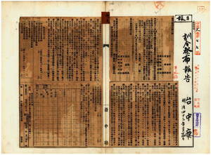 六九 第六号 明治四二年五月台中庁訓令第八号警察費及衛生費所属物品取扱規程ヲ管内一般ニ施行ノ件並ニ明治三七年三月彰化庁訓令第二号ヲ廃止シ、明治三六年一一月苗栗庁訓令第三一号ハ当庁管内ニ於テ失効ス(1910-02-24~1910-03-14);台中庁・嘉義庁・阿緱庁ノ訓令供閲ノ件(1910-03-04~1910-03-14)