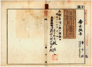 八四 第八四号 明治三八年九月台中庁令第一〇号蕃人ニ対スル物品供給ノ取締ニ関スル施行細則ニ依リ愛国婦人会台湾支部長大島富子ニ蕃産物交換所開設許可ノ件