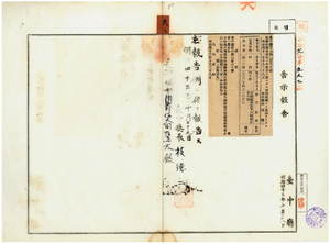 六〇 第二六〇号 阿緱庁港東下里枋リョ庄陳老所有ノ支那形船永水発ノ船鑑札流失ニ付キ該鑑札ヲ無効トスル旨阿緱庁ヨリ通知ノ件