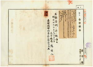 六五 第二六五号 台中庁藍興堡台中街ノ山田鉄一ト吉松惣四郎ヘ収入印紙売捌許可ノ件