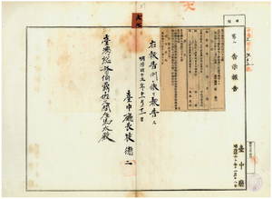 六七 第二六七号 台中庁管内ノ藍興堡台中街宇佐美兼次郎・師東上堡圳リョ庄林慈・藍興堡台中街加藤栄造ノ自転車鑑札紛失ニ付キ該鑑札ヲ無効トス