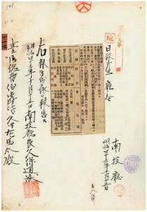 一一四 第一四号 南投庁管内草鞋墩支庁・埔里社支庁・集集支庁・林砥埔支庁ノ名称位置及管轄区域制定ノ件