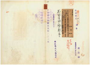 一三二 第一七号 明治三五年一一月南投庁訓令第一八号庁警察処務細則ヲ林砥埔支庁ニ施行ノ件並ニ明治三五年一二月斗六庁訓令第一五号斗六庁警察処務細則ハ爾後不適用トス