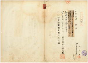 一五六 第四一号 明治四二年一一月南投庁訓令第二三号及ヒ明治四三年六月南投庁訓令第二四号課及支庁配置定員中改正ノ件