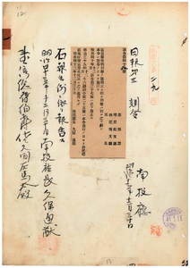 一 第四八号 区長報告例制定ノ件並ニ明治四〇年一二月南投庁訓令第三七号ヲ廃止シ、同三九年一二月斗六庁訓令第二五号ハ林砥埔区・塲仔リョ区・労水坑区ニ不適用トス
