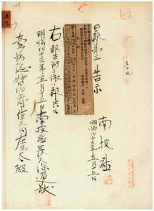 五九 第五八号 南投庁沙連堡江西林庄劉来旺ハ煙草小売鑑札紛失ニ付キ該鑑札ヲ無効トス