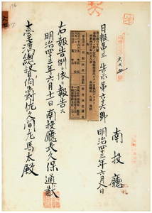 六七 第六六号 嘉義庁管内ニ炭疽牛疫発生ニ付キ同庁ヨリ通知ノ件
