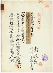 南投廳告示第七十九號臺中廳ヨリ豚疫終熄通知ノ件