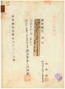 南投廳告示第百十一號臺中廳ヨリ豚虎列刺發生通知ノ件