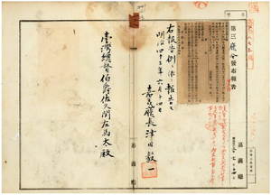 一二八 第九号 明治三八年四月斗六庁令第七号下湖口支庁掌理事項ヲ廃止シ、並ニ明治三八年四月斗六庁令第六号各支庁事務分掌事項ハ明治四三年六月一四日ヨリ失効ス