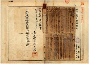 三 第一三号 飼犬取締規則制定ノ件並ニ明治三六年二月嘉義庁令第二号ノ廃止及ヒ明治三六年七月元塩水港庁令第六号明治三六年二月元斗六庁令第一号ハ失効ス