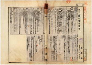 九 第一九号 獣類屍体埋却場取締規則制定ノ件並ニ明治三六年一二月嘉義庁令第二〇号ノ廃止及ヒ明治三六年一二月塩水港庁令第一一号明治三七年三月斗六庁第七号ハ失効ス