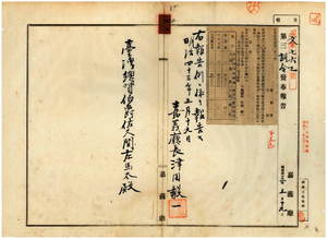 四二 第二一号 明治四三年四月嘉義庁訓令第一三号巡査特別月額手当支給人員及其給額改正ノ件但シ支庁統計事務担任者ハ会計事務担任者ヲ兼任ス