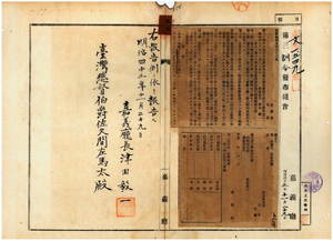 七七 第五六号 蕃人ニ対スル物品供給取締規程施行細則取扱手続制定ノ件並ニ明治三八年八月嘉義庁訓令甲第二三号ヲ廃止ス