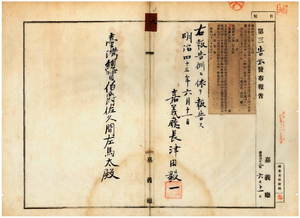 九 第二九号 台南庁管内ニ牛疫流行ニ付キ牛羊属ノ出入並病毒伝播ノ虞アル物品ノ搬出ヲ停止スル旨同庁ヨリ通知ノ件