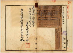 二五 第四五号 嘉義庁管内ノ打猫西堡新港街・大苛田堡埒内庄・同堡土庫庄・斗六堡水碓庄・鹿仔草堡後リョ庄・同堡鹿仔草庄・果毅後堡小脚腿庄・白鬚公潭堡竹仔脚庄・大怒榔西堡湾内庄・同堡港尾リョ庄・嘉義東堡下六庄・打猫東下堡松仔脚庄・鉄線橋堡太康庄・大怒榔東頂堡水燦林庄ニ牛疫発生ノ件
