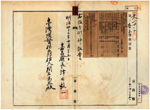 五二 第七二号 嘉義庁管内ノ海豊堡麦リョ庄・白沙墩堡潭内庄・同堡仰内庄・尖山堡牛挑湾庄・鹿仔草堡山仔脚庄ニ牛疫発生ノ件