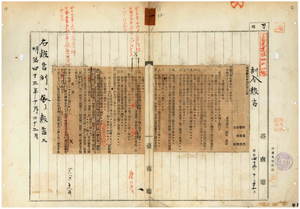 一 第三三号 支庁長委任事項制定ノ件並ニ明治三九年一二月台南庁訓令第三号ヲ廃止シ、同三六年八月塩水港庁訓令第一〇号ハ当庁管内ニ於テ失効ス