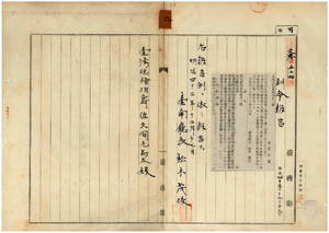九 第四一号 台南庁区長報告例制定並ニ別冊「明治四十三年十二月十六日台南庁訓令第四十一号別冊台南庁区長報告例」頒布及ヒ本令予報第四表及第一八表ニ係ル事柄ニ付報告方ノ件