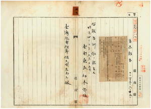 六二 第四六号 台南庁善化里東堡北仔店庄ノ陳鴻鳴ノ阿片烟膏仲売捌人ヲ解罷シ同庁善化里西堡湾裡街ノ蘇試ヘ阿片烟膏仲売捌人ヲ指定スルノ件