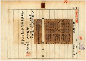 一七 第九七号 台南庁管内ノ仁寿上里塩花庄荘知高・大竹里前鎮庄朱都・台南市薬王廟街陳和・大竹里苓雅リョ庄陳中和・興隆内里哨船頭街盧分来・大竹里旗後街陳境・同里同街王水・台南市北勢街呉永・永寧里喜樹庄蔡尉・大竹里旗后街楊珎・効果忠里安平街黄学・台南市北頭角街柯大粒ノ船鑑札流失及ヒ紛失ニ付キ該鑑札ヲ無効トス