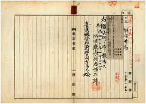 四九 第五号 明治三五年一二月阿緱庁訓令第二八号阿緱庁処務規程第三四条改正ノ件