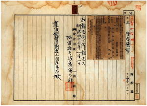 一一三 第一号 明治四二年一二月阿緱庁告示第八九号阿片煙膏仲売捌人指定中阿緱庁港西中里阿緱街陳良ヲ削除シ同庁同里同街張紹岸ヲ阿片煙膏仲売捌人ニ指定ノ件