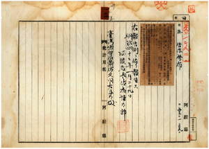 一二二 第一〇号 阿緱庁港西下里万丹庄王大球ハ食塩請売鑑札紛失ニ付キ該鑑札ヲ無効トス