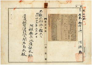 三 第三五号 明治四三年一月阿緱庁告示第五号蕃務官吏駐在所名称位置管轄区域中変更及新設ノ件