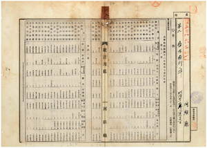 一八 第五〇号 阿緱庁管内ノ阿緱公学校・阿里港公学校・万丹公学校・内埔公学校・潮州公学校・万巒公学校・東港公学校・茄苳脚公学校・枋リョ公学校・蕃薯リョ公学校・瀰濃公学校・内門公学校・田リョ公学校・楓港公学校・車城公学校・恒春公学校・龍泉水公学校・蚊蟀公学校ノ明治四二年度歳入歳出決算ノ件
