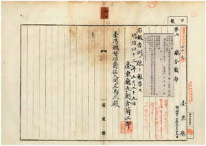 五〇 第三号 明治四〇年八月台東庁令第七号警察取締諸営業ニ関スル件第二条中第一六号削除ノ件