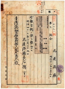 花蓮港廳訓令第三十號蕃務官吏駐在所勤務ノ巡查巡查補普通警察兼務等ノ件