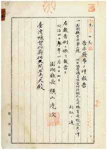 一五 第二号 澎湖庁管内ノ呂閃ハ阿片烟膏購買吸食特許鑑札及ヒ阿片烟膏購買通帳流失ニ付キ該鑑札並ニ通帳ヲ無効トス