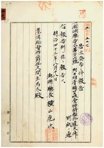 三九 第二六号 澎湖庁管内ノ顔榜ハ阿片煙膏購買吸食特許鑑札遺失ニ付キ該鑑札ヲ無効トス